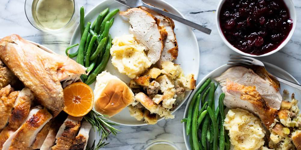 Don’t let the word ‘dry’ turn you off this dish. There’s nothing dry about the Dry Brine Spatchcock Turkey recipe that is bathed in an herb butter. Spatchcocking means splitting the bird by removing the backbone and butterflying it so the meat roasts evenly. After brining the turkey in salt brine and refrigerating it for up to 24 hours, the turkey is first cooked at high heat to brown it. Then, the temperature lowers, so the moisture is retained. While that roasts, the herb butter, featuring the classics rosemary, thyme and sage is combined. The herb butter is then placed under the turkey’s skin to evenly distribute it as it finishes cooking. The result? Crispy yet juicy turkey meat that will have family members fighting for the leftovers. Recipe and photo credit: National Turkey Federation