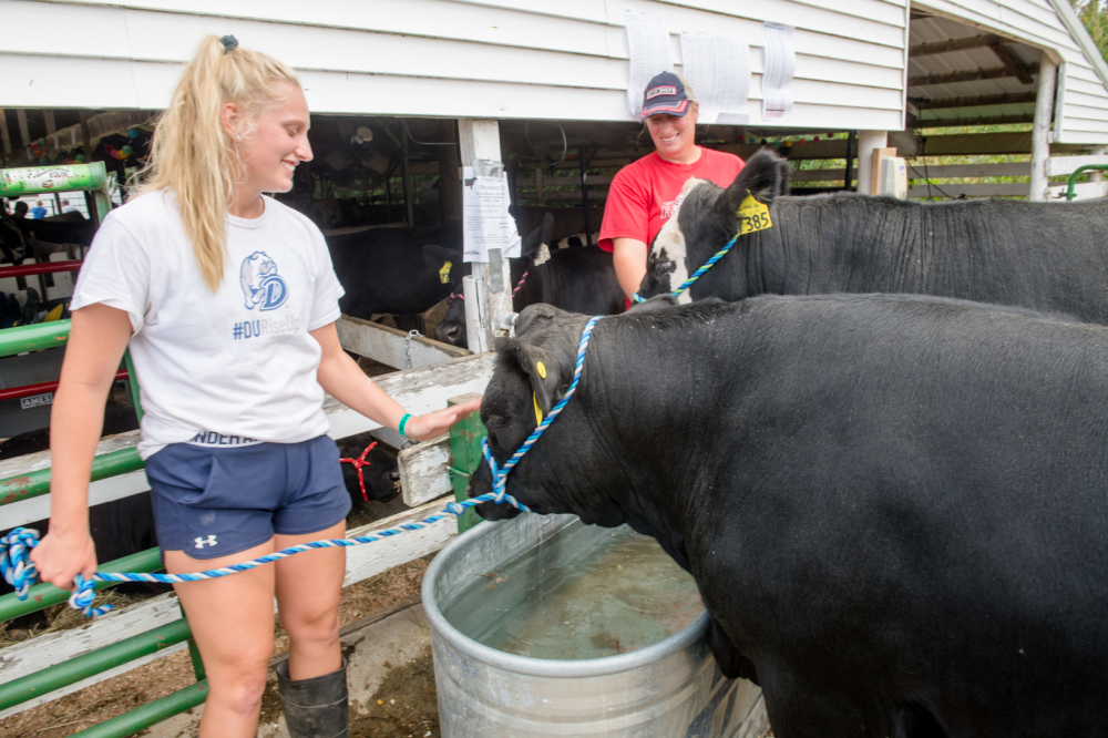 Lilly Fetkether and her mother Lisa Fetkether wait while their cattle take a during of water from a trough during the Bremer County Fair. Lisa Fetkether showed at the Bremer County Fair when she was in school so she said it is a neat experience watching her children participate too. Photo credit: Joseph L. Murphy, Iowa Soybean Association