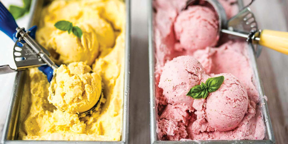For soft-serve-style ice cream, serve immediately with an additional sprig of fresh herbs, if desired.