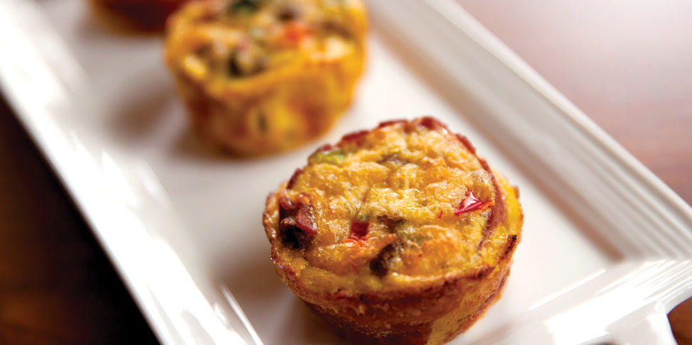 Spray mini-cupcake pan with nonstick spray. Fill each cup a little over halfway with the egg mixture.