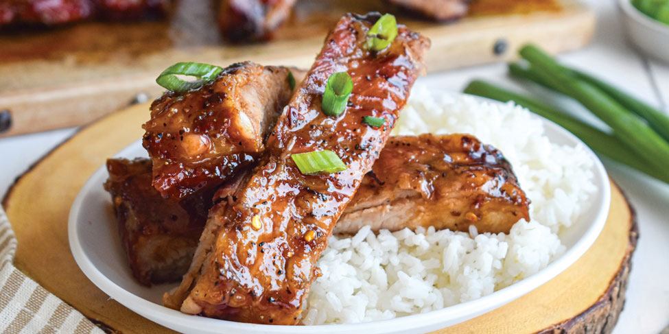 Cut ribs between the bones and serve as is or over white rice, sprinkled with sliced green onions.