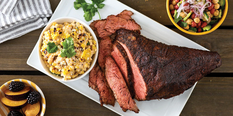 Carve roast across the grain into ½-inch-thick slices. Serve alongside grilled corn elote.