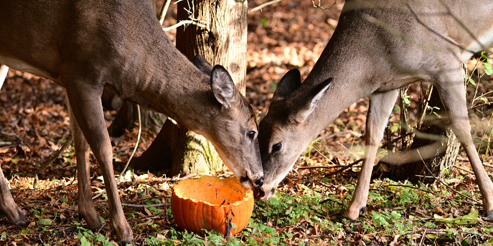 Wild animals will happily help you put those pumpkins to good use. Deer, squirrels, birds and other critters enjoy snacking on pumpkin flesh and seeds.