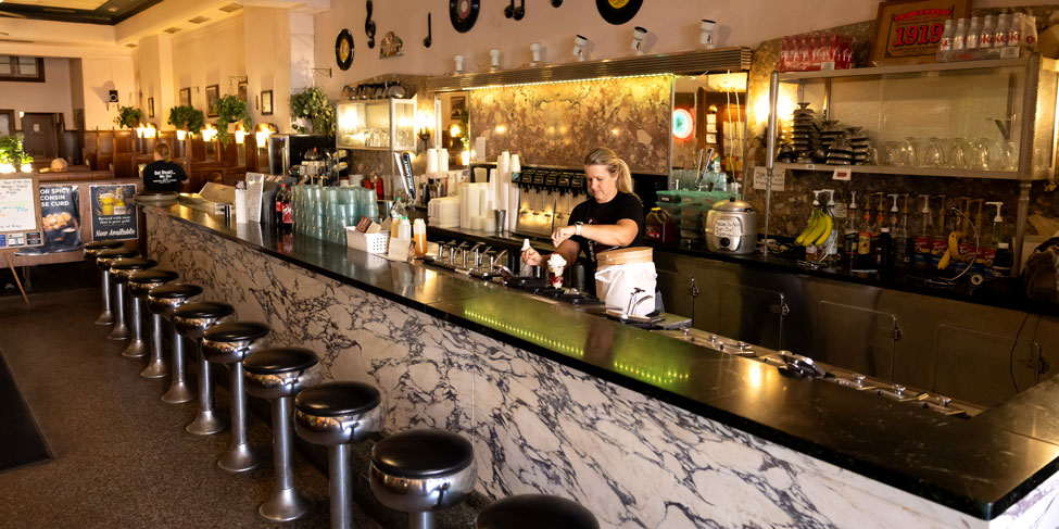 The Zaimes stopped at the first real estate office they could find and asked if any empty buildings were available. There weren’t, but The Princess — a classic café and soda shop — was for sale. Minette says, “When we walked into The Princess, it was just…it pretty much stopped us in our tracks. And that was it.”